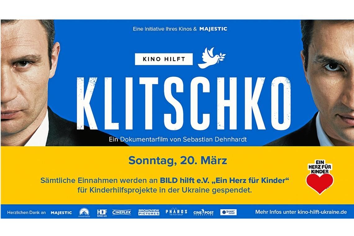 Murrhardt. Am kommenden Wochenende wird sich das Murrhardter Kino an einer deutschlandweiten Spendenaktion für Kinder in der Ukraine beteiligen. Auf Initiative der Kinokette Cineplex und des Majestic-Filmverleihs haben sich in Deutschland über 450 Kinos zusammengeschlossen, um mit einer einzigartigen Spendenaktion Kinder und Familien in der Ukraine zu unterstützen. Denn die Not und das Leid der Menschen in der Ukraine erschüttern die deutsche Öffentlichkeit und der Wunsch zu helfen ist groß. Alle teilnehmenden Kinos zeigen am 20. März um 18 Uhr den Dokumentarfilm „Klitschko“. Sämtliche Erlöse der Vorstellungen werden an den Verein Bild hilft „Ein Herz für Kinder“ für Kinderhilfsprojekte in der Ukraine gespendet. Der Eintritt zu dieser Vorstellung beträgt zehn Euro. An der Kasse haben die Gäste zudem die Möglichkeit, diesen Betrag durch eine zusätzliche Spende noch zu erhöhen. Die Murrlichtspiele werden zudem auch alle Einnahmen aus Speisen und Getränken spenden. Sämtliche Erlöse aus der Aktion fließen als Spende an „Ein Herz für Kinder“, um dringend benötigte Hilfsmaßnahmen für die vom Krieg betroffenen ukrainischen Kinder und Familien zu unterstützen. Die Klitschko-Brüder sind bereits seit Jahren mit dem Verein Bild hilft „Ein Herz für Kinder“ persönlich verbunden.