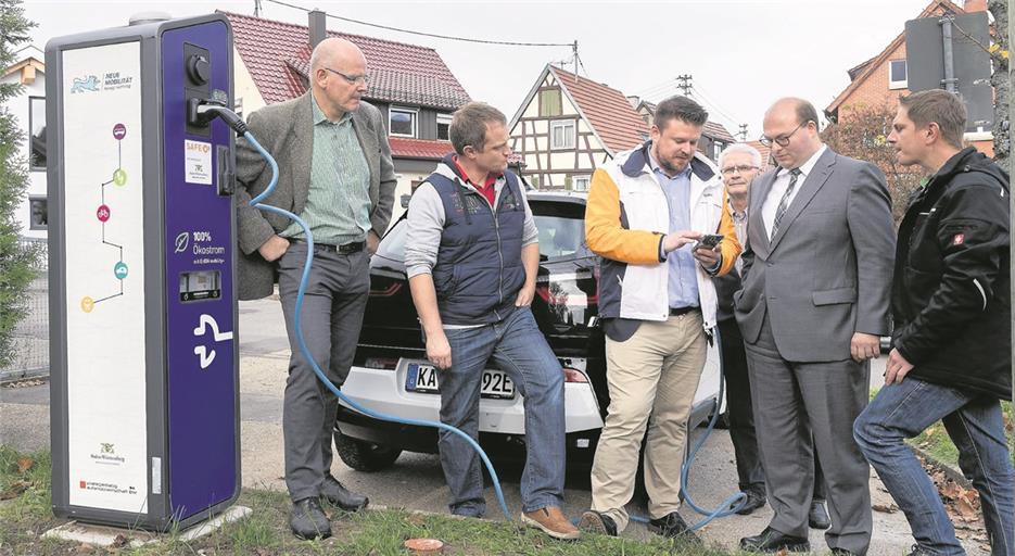 MURRHARDT (cs). Gestern gaben Bürgermeister Armin Mößner und Jakob Huber von der EnBW Energie Baden-Württemberg AG mit weiteren Vertretern von Stadtwerken und Stadt den Startschuss für die E-Ladesäule auf dem Parkplatz in der Murrhardter Grabenstraße. Dort können nun E-Auto-Besitzer und -Nutzer ihr Fahrzeug auf zwei Plätzen mit Strom betanken. Neben dem jeweiligen Anschluss für das Ladekabel mit einem Typ-2-Stecker befindet sich dort zudem noch eine weitere herkömmliche Dose, an der sich Pedelecs oder andere Geräte aufladen lassen. Jakob Huber demonstrierte, wie das Tanken mit einer EnBW-Karte oder per Smartphone-App funktioniert. Verriegelt man den Wagen nach Anschluss des Kabels, lässt es sich nicht mehr abziehen. „Der Standort hier ist natürlich ideal, man kann dann einfach in die Stadt, etwas einkaufen oder einen Kaffee trinken gehen“, sagte er. Die Einrichtung der Station erfolgte im Rahmen des Projekts „Save“, das vom Land Baden-Württemberg gefördert wird. Ziel ist es, ein Grundnetz an Ladesäulen in Baden-Württemberg zu schaffen. Es erstreckt sich in einem Raster von jeweils etwa zehn mal zehn Kilometer für eine AC-Ladeinfrastruktur (Wechselstrom) und etwa 20 mal 20 Kilometer für eine DC-Ladeinfrastruktur (Schnellladevorrichtung). Die neue Station in Murrhardt gehört zu den AC-Säulen, die für einen kompletten Ladevorgang von Null auf 100 Prozent rund drei Stunden benötigt, wobei Jakob Huber anmerkte, dass viele zwischendurch und deshalb nicht so lange Strom tanken. Die nächste Schnellladestation befindet sich in Backnang.mehr...