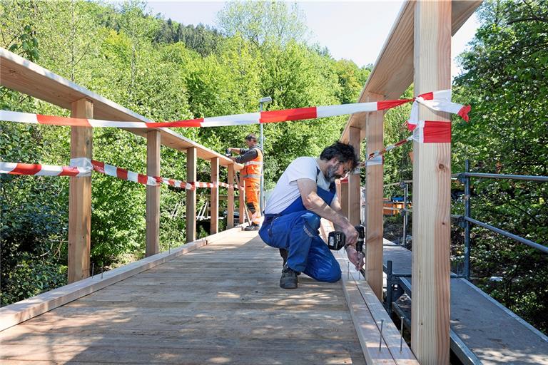 Die Arbeiten zum Wiederaufbau der Pilgerstaffel in Murrhardt sind gut angelaufen. Wenn die Trasse nach oben zurWalterichskirche fertiggestellt ist, können sich der Unterbau und die Verlegung der Trittstufen anschließen.