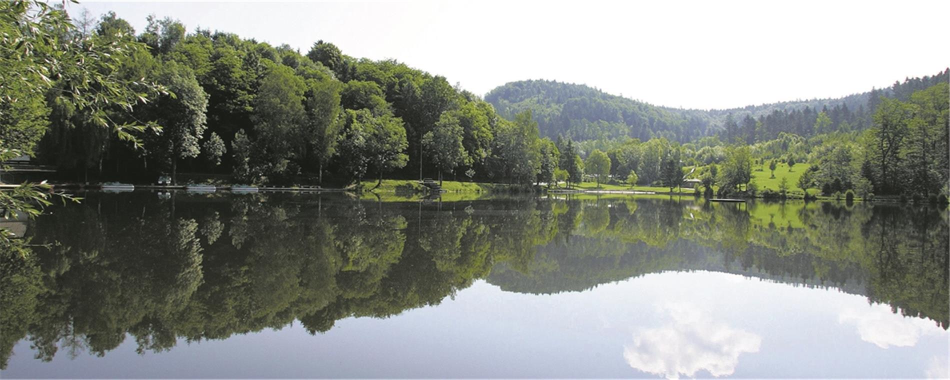 Die idyllische Lage mitten im Wald – der Fornsbacher Waldsee ist auch heute ein beliebtes Ausflugsziel. Foto: MZ-Archiv