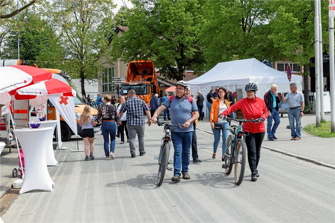 Das Spektrum ist breit. Interessierte der Automobilwelt können sich zu Fahrzeugen, Antrieben und letztlich auch Fragen des Umbruchs in der Branche erkundigen, Tüv-Untersuchung oder Campingvermietung sind weitere Facetten des Themas Mobilität, genauso wie Beratung und Service rund um Reise und Urlaub. Die großen Fahrzeuge des Murrhardter Entsorgungsunternehmens Schäf weisen mit Schildern auf ihren Auftrag hin – Alleskönner und Mülldetektor. Letzterer erkennt, wenn in der Biomülltonne Metall oder Plastik gelandet ist. Edgar Schäf freut sich über die Neugier der Gäste, denen er von Technik, Ausstattung und Alltagsgeschäft berichtet. Auch die Kehrmaschine habe richtig Power, erzählt der Geschäftsführer. Ein Pflasterstein, der nicht richtig verankert ist, „geht da schon mal spazieren“.
