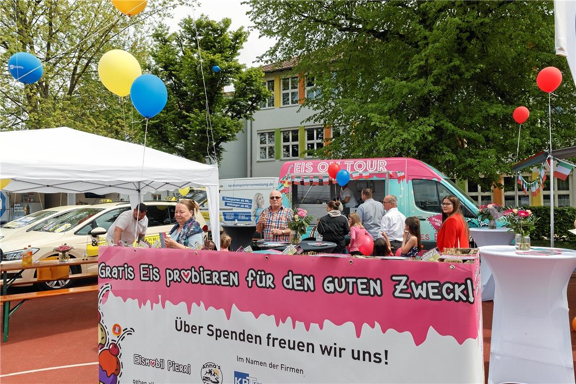 Beim Torwandschießen tritt auch Bürgermeister Armin Mößner (vorne) an.