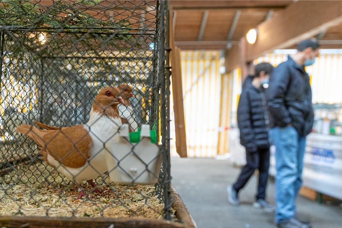 Murrhardt. 200 Prachtexemplare einer Vielzahl verschiedener Rassen, darunter 80 Kaninchen, 65 Hühner und 56 Tauben, präsentierten heuer die Züchter des Geflügel- und Kaninchenzuchtvereins bei der Kleintierlokalschau auf der Stadthallenterrasse. Im Vorjahr konnte diese wegen der Coronapandemie nicht stattfinden. Jetzt war die Ausstellung, die nur am Sonntag fürs Publikum zugänglich war, „den Umständen entsprechend sehr gut besucht“, freut sich der Vereinsvorsitzende Wolfgang Hess, obwohl die aktuell kritische Situation in der Pandemie verschärfte Zugangsbeschränkungen und -kontrollen erforderte.